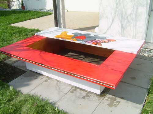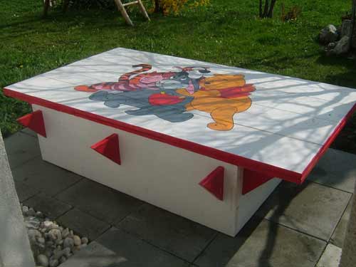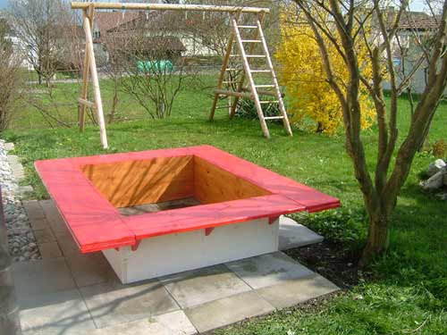 Holzsandkasten, bemalt oder naturbelassen (Abmessungen: 350x400 cm